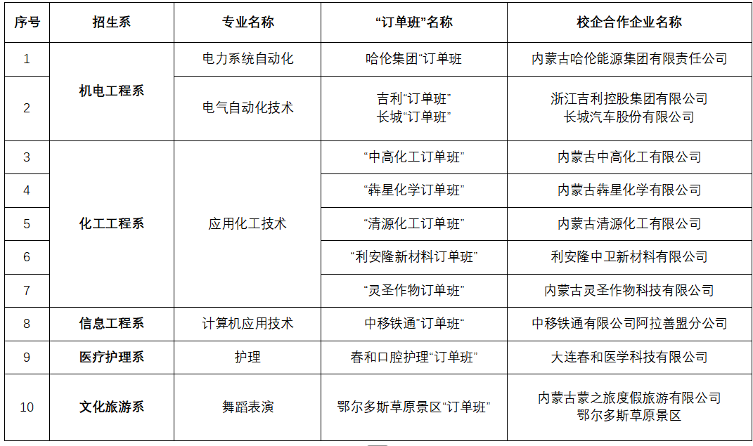 阿拉善职业技术学院2026年“订单班”统计表